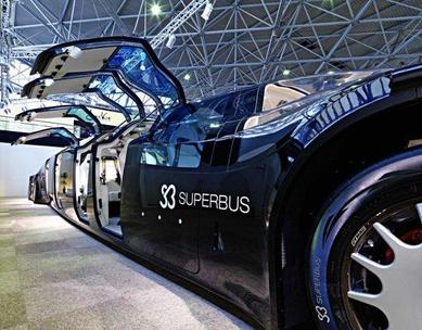 Приводит в движение 9,5-тонный суперавтобус 805-сильный электромотор, питающийся от комплекта литий-ионных батарей. На одном заряде Superbus может проехать до 210 км со скоростью до 250 км/ч.
