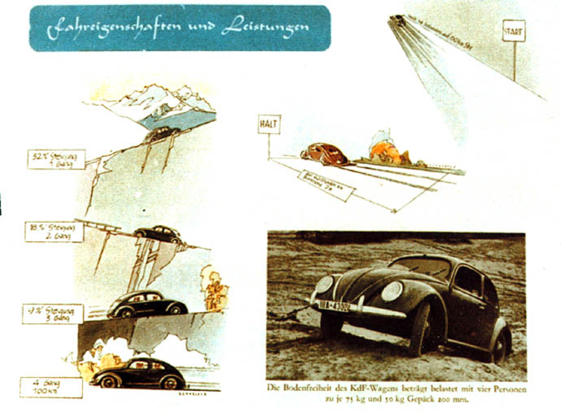 В 1939 году с конвейера сошел первый автомобиль, который был построен по чертежам Porsche Typ 60. Модель получила название KdF-Wagen (Kraft durch Freude - в переводе "сила через радость"). Удивительно, но автомобилю 1939 года выпуска могут позавидовать многие современные аналоги. Его мощность была около 30 л.с., а максимальная скорость составляла 100 км/час. При этом расход топлива не превышал 8 л на 100 км. Но, начало войны внесло свои коррективы в планы предприятия.