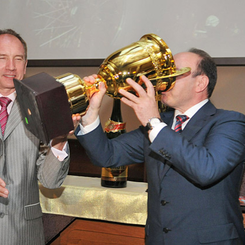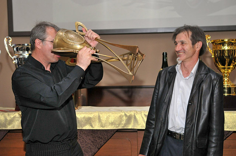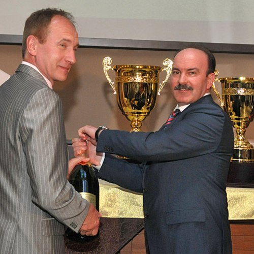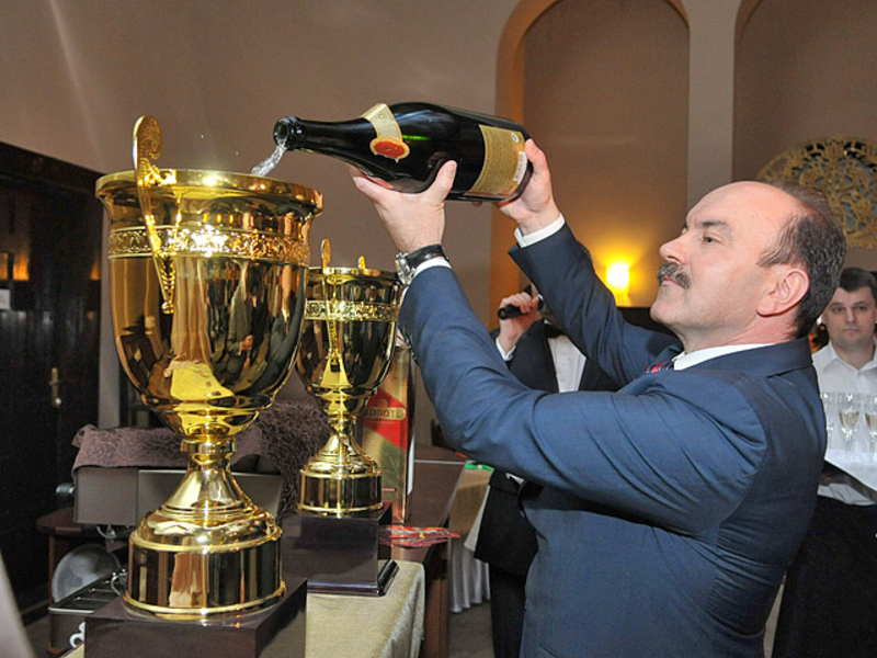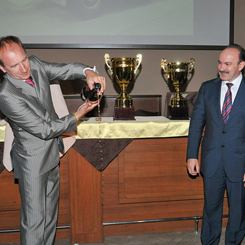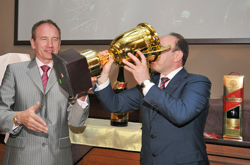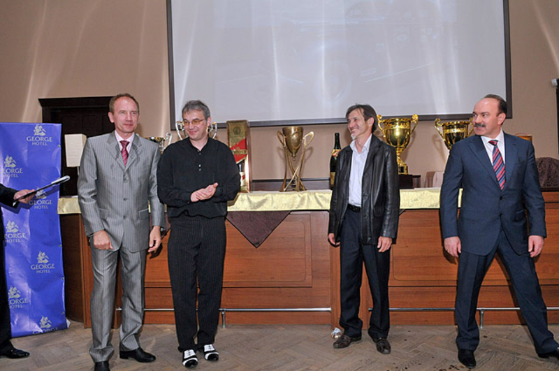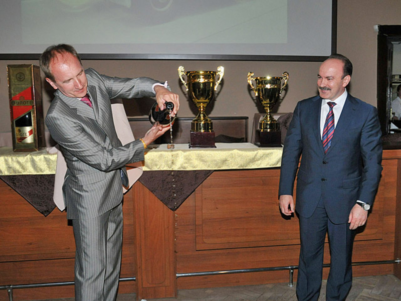 Кроме того Председатель Львовской ОГА совместно с пятикратным чемпионом Украины по авторалли Василием Ростоцким откупорили 1,5 литровую бутылку шампанского. Игристый напиток налили в новенький кубок, как настоящие победители автогонок.