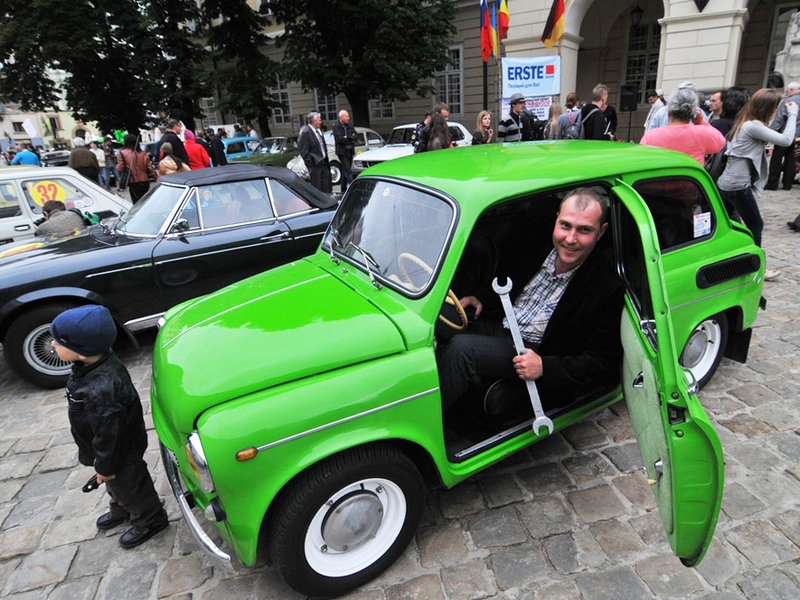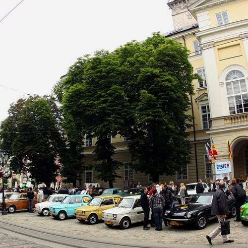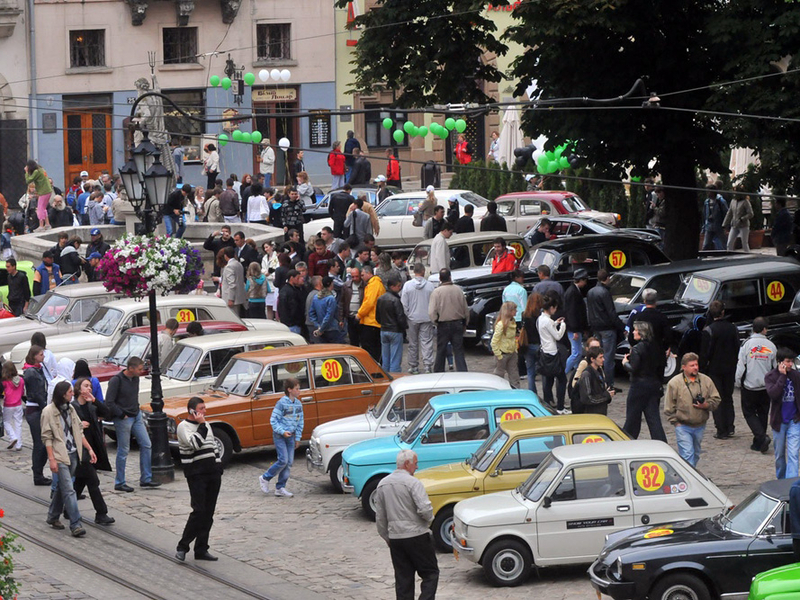 С самого утра на площадь Рынок начали съезжаться старые автомобили и выстраиваться перед Ратушей. Необычный шум машин с украинскими, польскими, прибалтийскими номерами, различных марок, годов и цветов очень быстро собрал толпу любопытных прохожих.