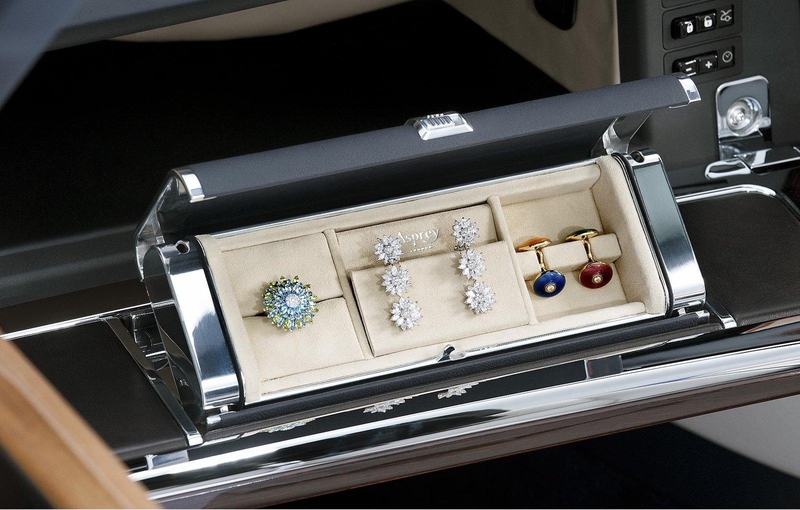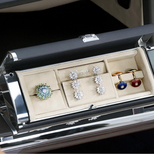 Упаковать багаж можно в специальные дизайнерские сумки, размещенные в багажнике уникального Phantom Drophead Coupe. А в бардачке имеется отделение для хранения драгоценностей от ювелиров из Asprey.
