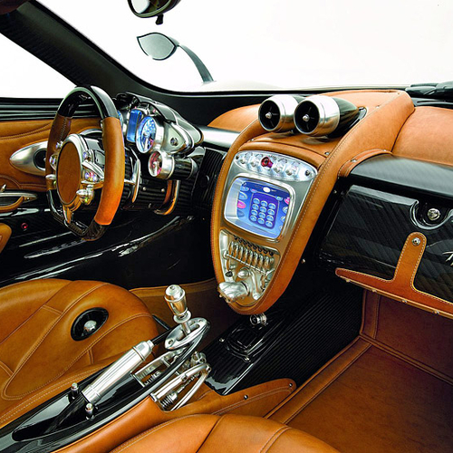 Возглавляет рейтинг самых красивых автомобильных интерьеров суперкар Pagani Huayra. Салон машины больше бы подошел инопланетному космолету, чем земному дорожному автомобилю. Выступающая вперед вместе с рулем приборная панель, огромный "язык" центральной консоли с громадными дефлекторами по центру - ярко, необычное и, главное, очень роскошно и не вычурно.