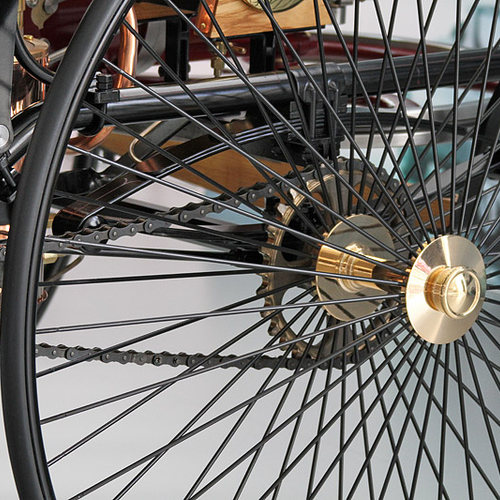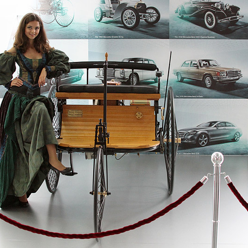 Первая машина имеет всего три колеса и двигатель мощностью 1 л.с. Это транспортное средство было создано в 1886 году, и именно оно стало прародителем всех современных машин. В том числе и Mercedes-Benz SLR Stirling Moss с 5,5-литровым мотором мощностью 650 л.с. Всего было создано лишь 75 подобных суперкаров.