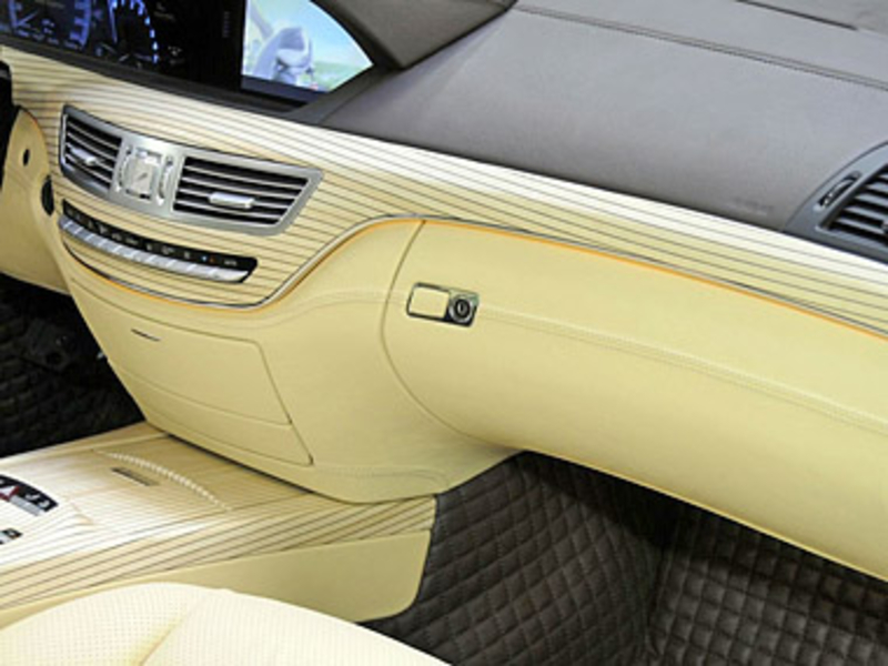 В салоне специалисты Brabus тоже поработали на славу. По сути перед нами сверхсовременный офис на колесах - в автомобиле есть современный ультратонкий ноутбук, цветной принтер и доступ в Интернет. Выводить любую картинку можно на 15-дюймовый жидкокристаллический монитор. Также в салоне есть два USB-порта, шторки с электроприводом, отделка древесиной в стиле яхт. А если и того вам покажется мало, Brabus предложит дополнительно спортивное рулевое колесо и откидные столики с электроприводом.