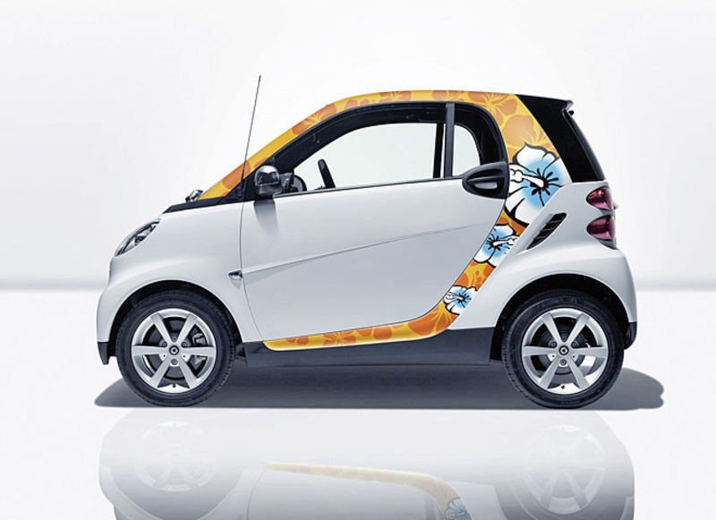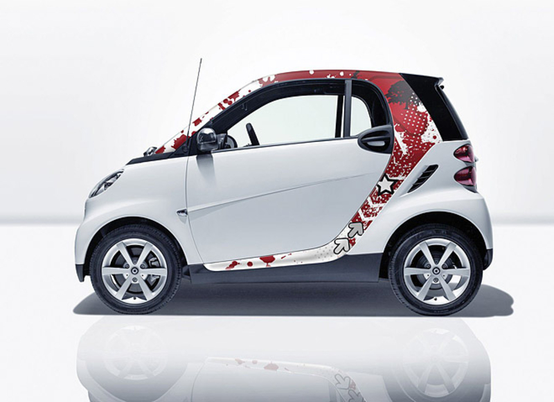 Среди элементов модернизации экстерьера компания Smart предлагает контрастные наклейки на кузов, которые выполнены в одном из шести цветовых решений. Все варианты нового дизайна были разработаны немецким художником Тимо Вурцем, которые уже продолжительное время сотрудничает с компанией Mercedes-Benz, материнской компанией Smart.