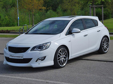 Кроме того, Opel Astra в варианте Steinmetz получила пакет дополнительного аэродинамического обвеса, который изменил автомобиль до неузнаваемости. Хэтчбек обзавелся новым передним бампером, черной радиаторной решеткой и миниатюрным спойлером на задней двери.