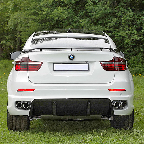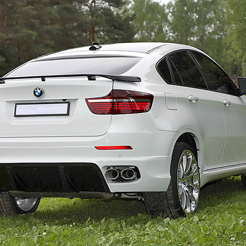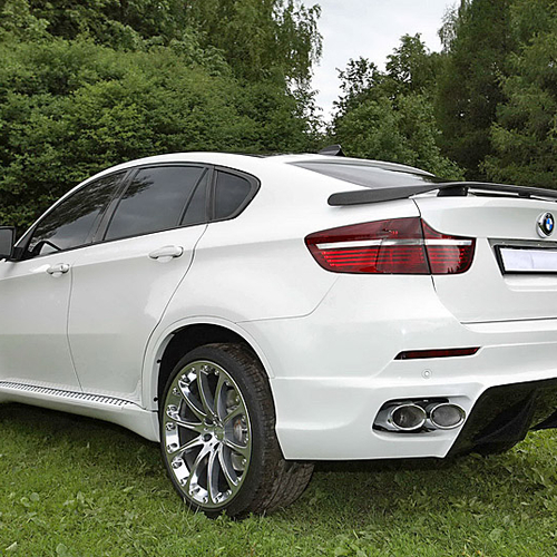 Московское тюнинг-ателье Status Design представило собственный вариант тюнинга баварского кроссовера. Россияне установили на BMW X6 массивные накладки на пороги, карбоновый спойлер на крыше, новый передний бампер со светодиодными фонарями дневного света, карбоновые футляры зеркал заднего вида и новый задний бампер с диффузором.