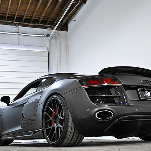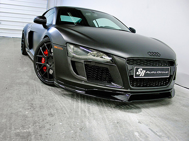 Модернизацию Audi R8 тюнеры из SR Auto начали с того, что перекрасили автомобиль в черный матовый цвет и установили на суперкар несколько карбоновых элементов фирмы PPI, в том числе накладки на пороги, задний диффузор и передний воздухозаборник. Передние и задние фары автомобиля сделали затемненными. Завершают картину внешних доработок 20-дюймовые колесные диски.
