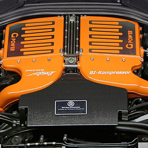 Впрочем, и 5 литров объема тюнерам из G-Power показалось мало - рабочий объем силового агрегата увеличили до 5,5 литров. Кроме того, тюнеры установили поршни MAHLE, два новых турбонагнетателя ASA T1-316, новый интеркулер и перепрограммированный блок управления двигателем. В результате доработок мощность автомобиля выросла до 900 л.с., а максимальный крутящий момент - до 870 Нм.