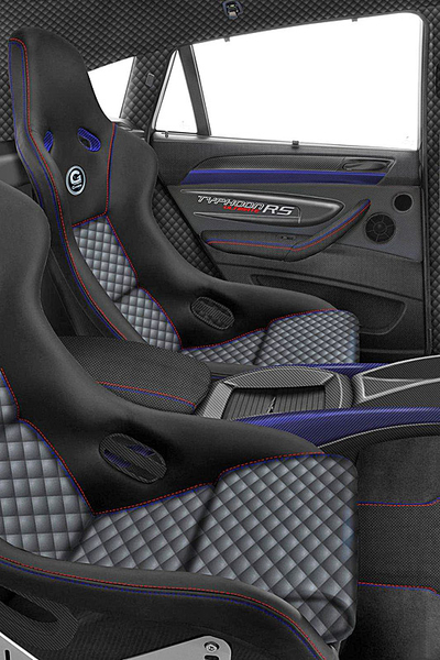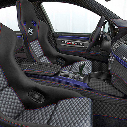 Кроме того, Typhoon RS Ultimate V10 получил агрессивный аэродинамический обвес. Среди наиболее примечательных его деталей можно выделить 23-дюймовые колесные диски, обутые в шины Michelin, дополнительные воздуховоды за передними и задними крыльями, небольшой спойлер на крышке багажника и диффузор.