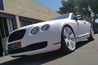 Автомобиль от капота до багажника покрыт белой змеиной кожей. Кроме того, Bentley Continental GT получил затемненные фары головного света, матово серые зеркала заднего вида, черную радиаторную решетку и новые легкосплавные колесные диски белого цвета. В салоне Bentley Continental GT в исполнении Dartz также преобладают белый и черный цвета.