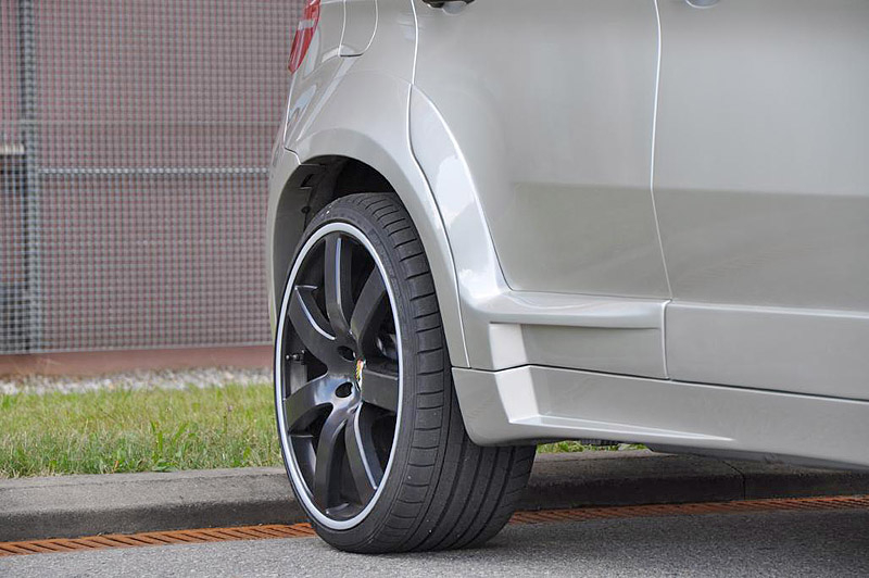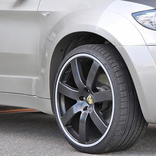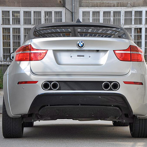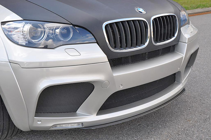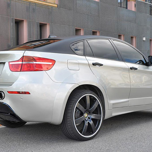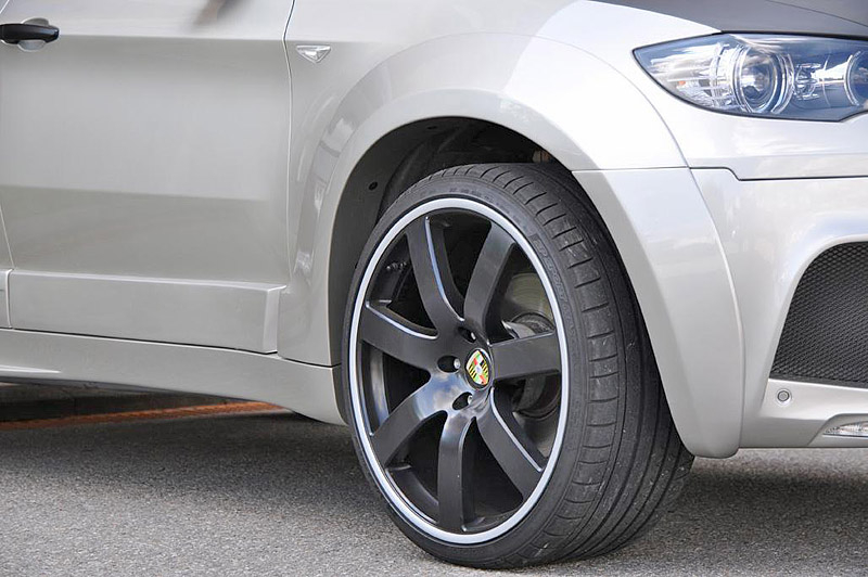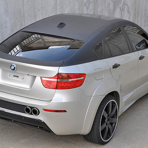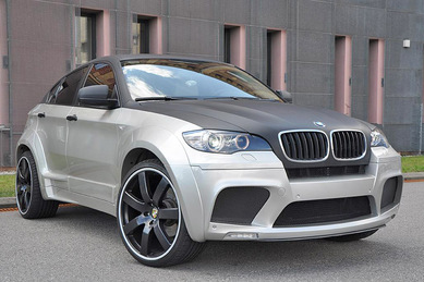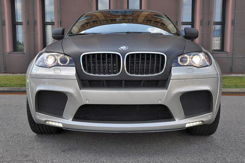 В тюнинг ателье установили на BMW X6 новый передний бампер со светодиодными фонарями и тремя мощными воздуховодами, позволяющими лучше охлаждать двигатель и тормозную систему. Кроме того, тюнеры приложили руку к колесным аркам, которые стали значительно шире, а также дополнительным накладкам на пороги.