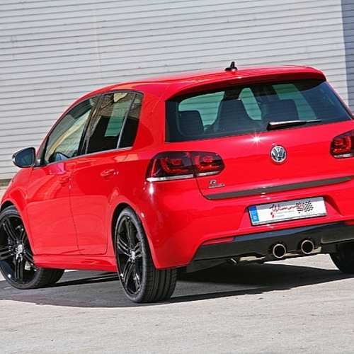 Чтобы справиться с возросшей мощностью Volkswagen Golf R, специалисты Wimmer RS установили на хэтчбек новую подвеску, а также новые, более мощные, тормоза.