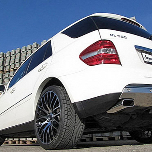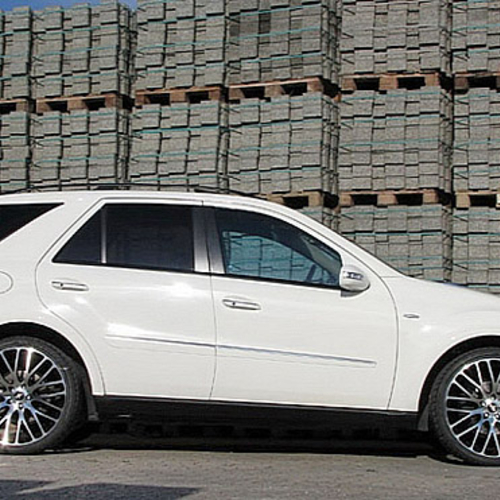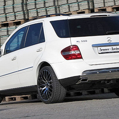 Внешне внедорожник Mercedes-Benz ML500 стал более "накаченным" благодаря расширенным колесным аркам и 22-дюймовым легкосплавным дискам Corniche Monza, обутым в низкопрофильную резину Vredestein Wintrac Xtreme.