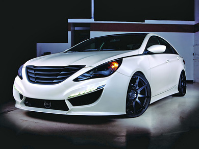 Среди прочего тюнинг версия Hyundai Sonata получила затемненную оптику, 20-дюймовые колесные диски, светодиодные противотуманные фонари, карбоновые крышу, задний диффузор, зеркала заднего вида и радиаторную решетку.