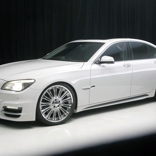 В пакет внешних доработок для баварской "семерки" вошли новый передний бампер с полосками светодиодных фонарей, на выбор короткие или длинные накладки на пороги, новый задний бампер, светодиодные стоп-сигналы и небольшой спойлер на крышке багажника.