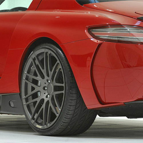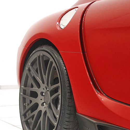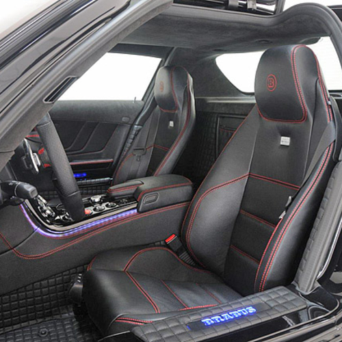Brabus Widestar Mercedes SLS обуют в мощные 20-дюймовые колесные диски спереди и 21-дюймовые сзади. Кроме того, чтобы улучшить управляемость автомобиля, тюнеры расширили на 20 мм заднюю колею.
