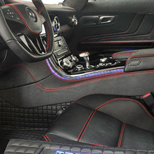 Доработка двигателя на автомобиле не проводилась, но в ближайшем будущем тюнеры намерены восполнить этот пробел. О приблизительных показателях максимальной скорости новой версии суперкара Brabus Widestar Mercedes SLS можно судить уже сейчас - спидометр авто расчерчен до 400 км/ч.