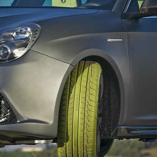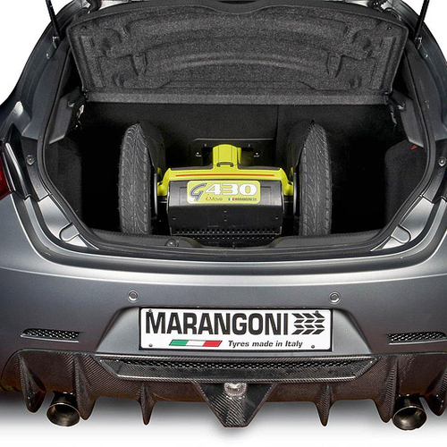Базовой моделью для своего шедевра шинники выбрали Alfa Romeo Giulietta 1750 Quadrifoglio Verde. На машину поставили шины M-Power iGreen размером 235/35 R19 и колесные диски Barracuda Karizzma. Покрышки в Marangoni покрасили в зеленый цвет, который хорошо контрастирует с матовым серым цветом кузова автомобиля.