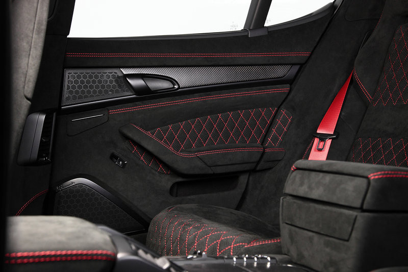 Материалы из углеволокна используются в радиаторной решетке TECHART Grand GT, переднем бампере, заднем спойлере и диффузоре. Использование карбона также позволило снизить общую массу автомобиля.