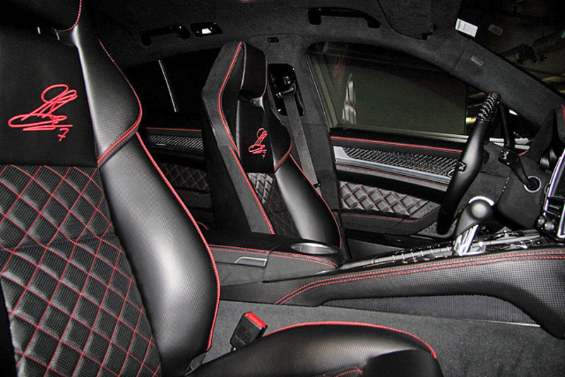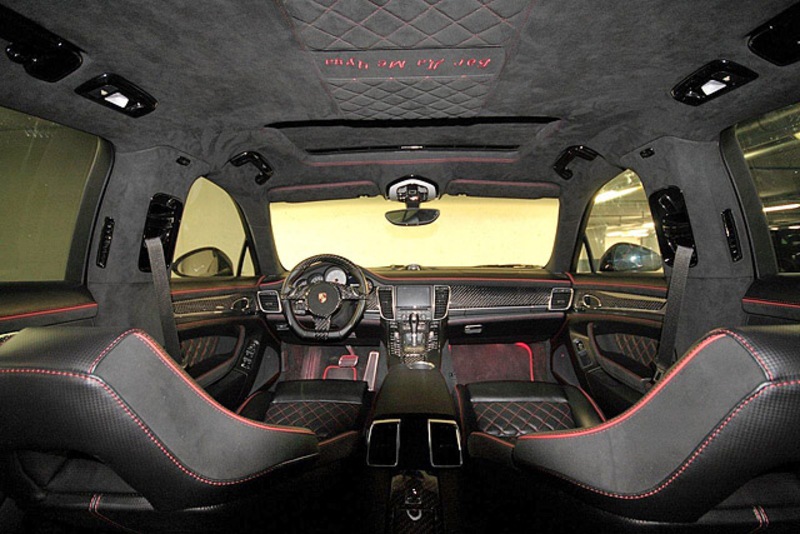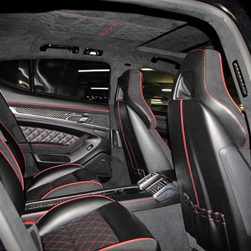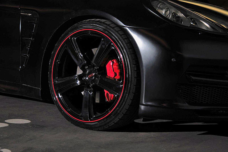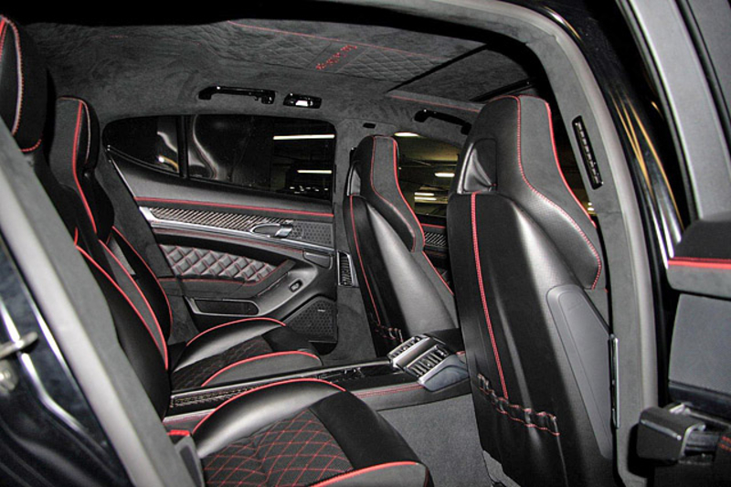 Также тюнеры поставили на Porsche Panamera 4S 22-дюймовые колесные диски с широкопрофильными шинами типоразмера 265/30R22 спереди и 295/25R22 - сзади. Подвеску автомобиля тюнеры снизили на 40 мм.