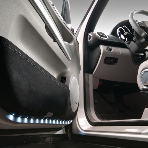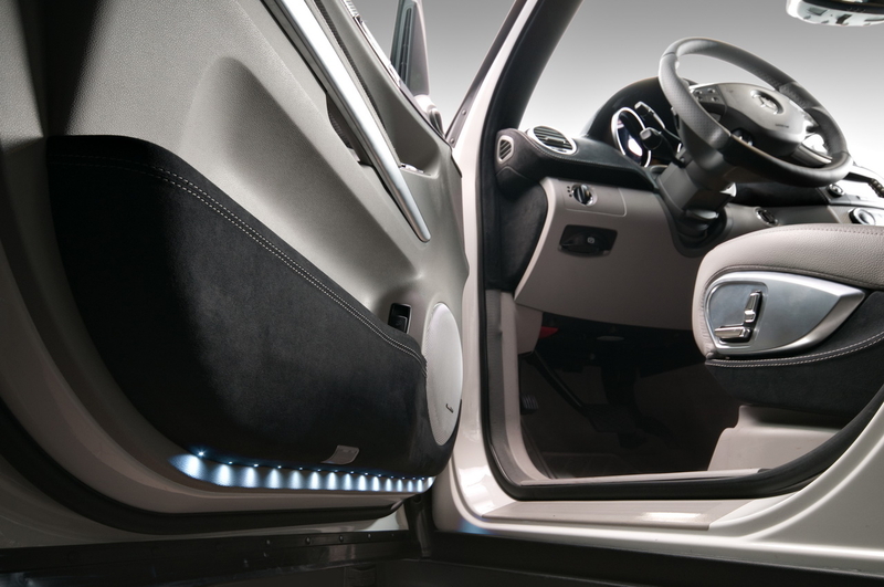 Салону тюнеры, как и полагается, уделили максимальное внимание - верхняя часть дверных панелей, карманы, элементы сидений и салонное зеркало заднего вида в Vilner отделали алькантарой. Кроме того, в дизайне интерьера появилось множество элементов из дорогой кожи и карбона.