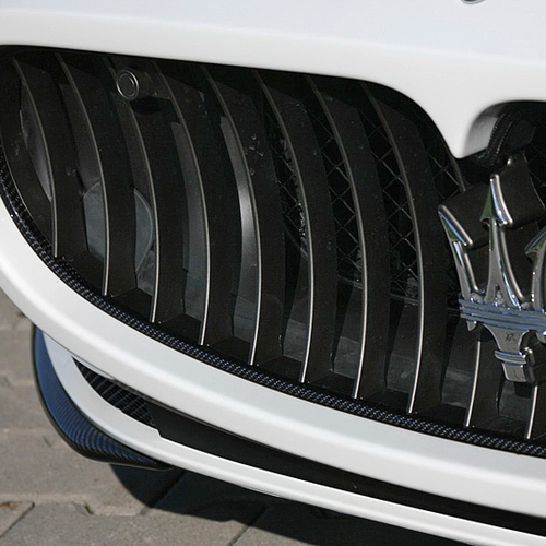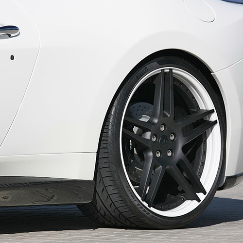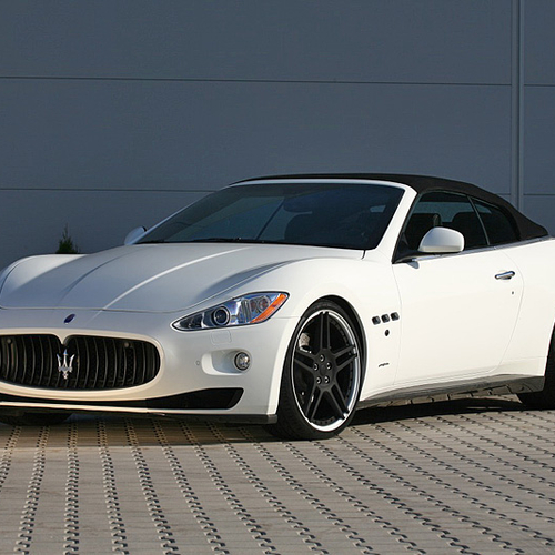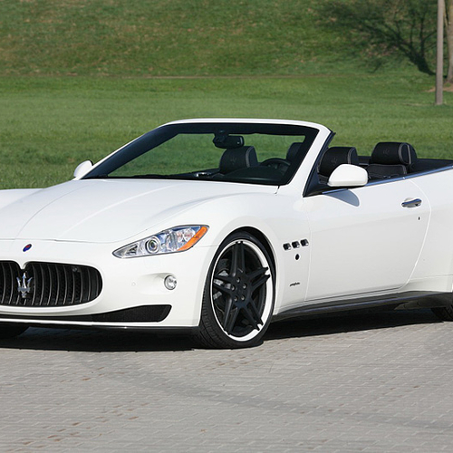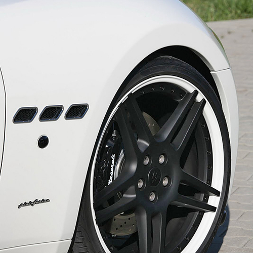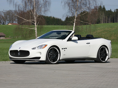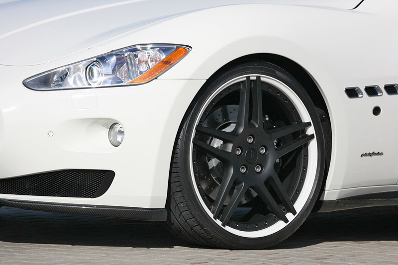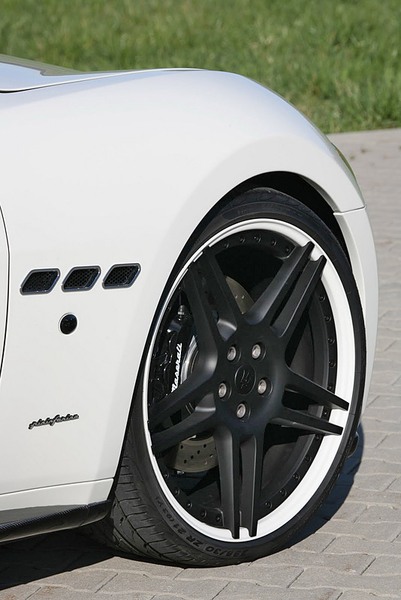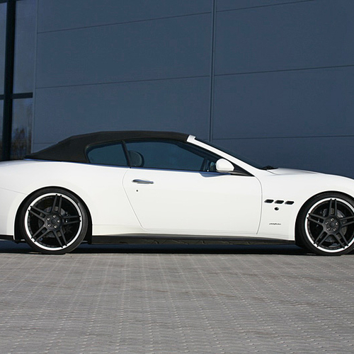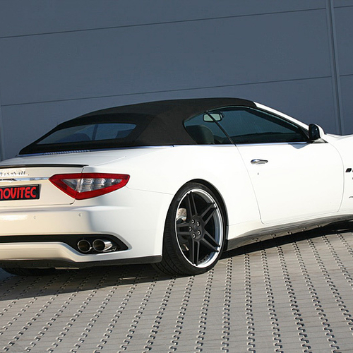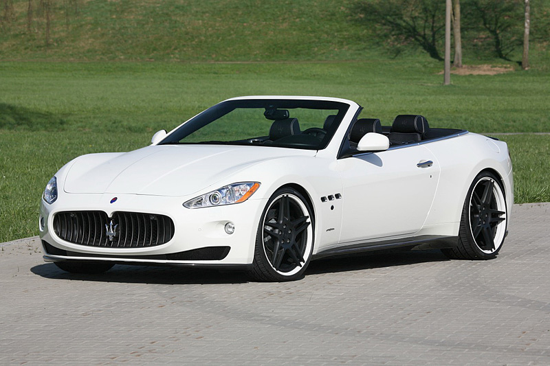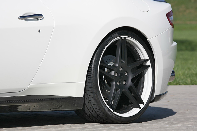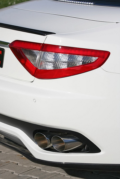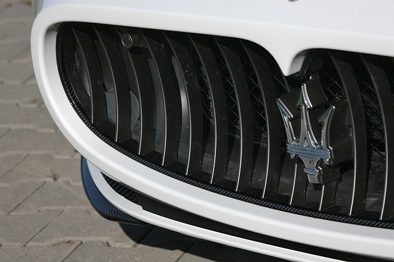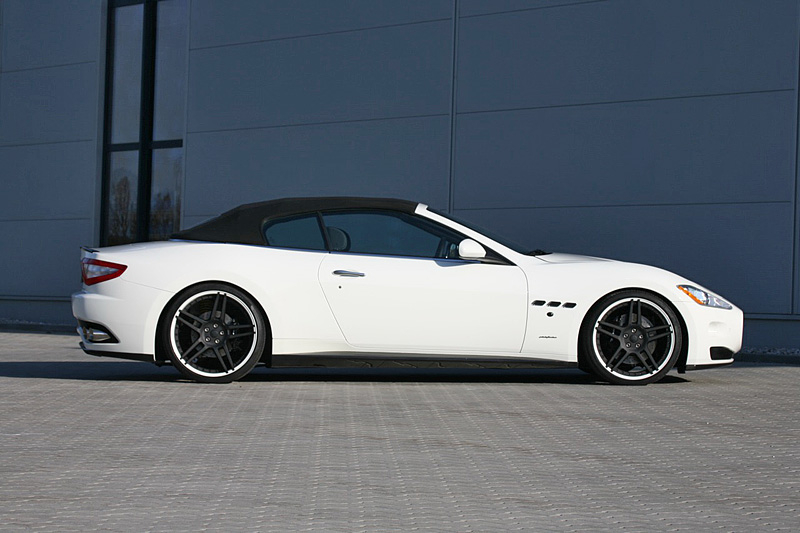 В пакет аэродинамического обвеса Maserati GranCabrio вошли новые бамперы, карбоновые накладки на пороги и небольшой спойлер на крышке багажника, а также 21-дюймовые колесные диски черного цвета.