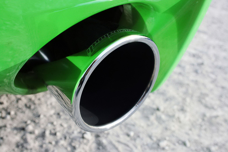 Сразу бросается в глаза черно-зеленый кузов этого масл-кара. Радует глаз обновленный передний спойлер, боковые юбки и задний бампер, а также большой диффузор. Автомобиль получил 22-дюймовые диски. По центру кузова проходит широкая черная полоса в гоночном стиле, а на дверях появился номер.