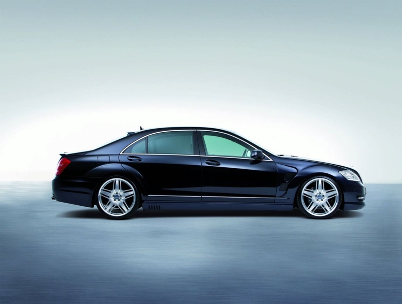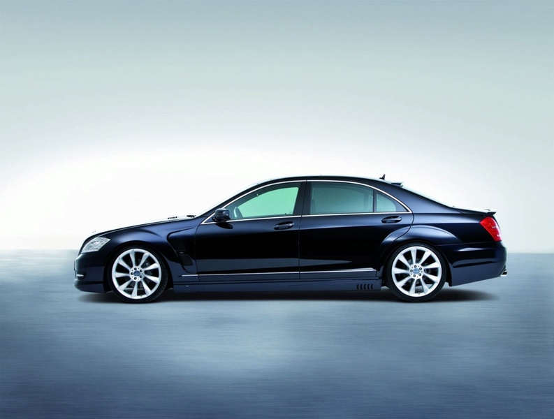 От стандартного Mercedes-Benz S-класса тюнинговый седан отличается дополнительным аэродинамическим обвесом - новые бамперы, новые передние крылья с огромными воздухозаборниками, накладки на пороги и небольшой спойлер на крышке багажника. Lorinser S70 обули в 22-дюймовые полированные колесные диски.