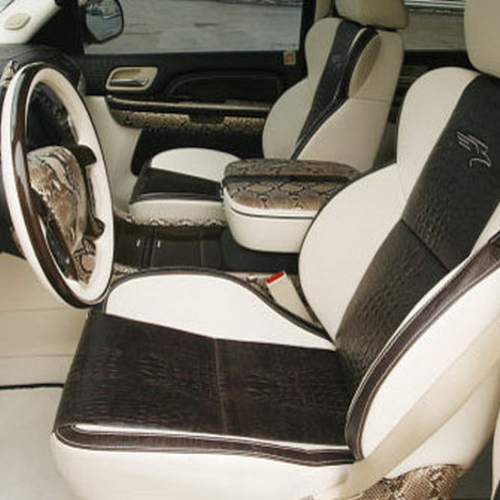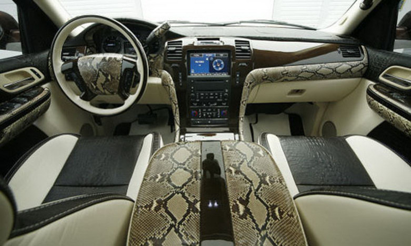 Впрочем, больше всего дискуссий вызвал салон Esacalade. Дело в том, что он отделан крокодиловой (как оказалось это имитация) и змеиной кожей по заказу клиента, и этот факт вызвал шквал критики со стороны защитников прав животных.