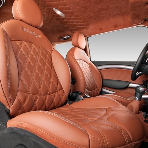 Для оформления интерьера была использована фирменная коричневая кожа Nappa, которую до этого применяли только в салонах люксовых автомобилей. Напоминает о Bentley и ромбовидная строчка обивки сидений.