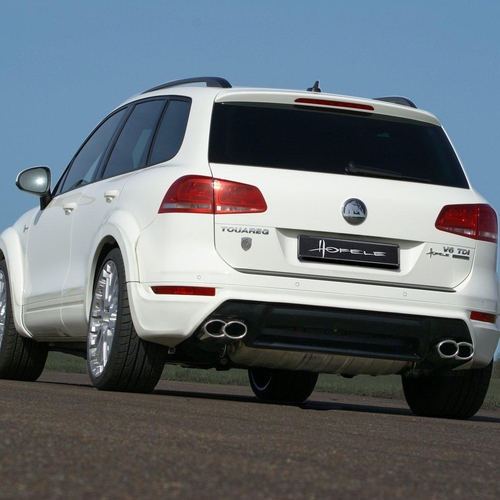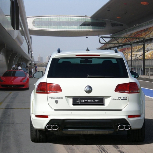 В список внешних модернизаций вошли новая радиаторная решетка, новые крылья, накладки на пороги, расширенные колесные арки, выхлопная система из нержавеющей стали. Кроме того, владельцы Volkswagen Touareg могут заказать электронный модуль, снижающий клиренс машины, а также 20- или 22-дюймовые колесные диски.