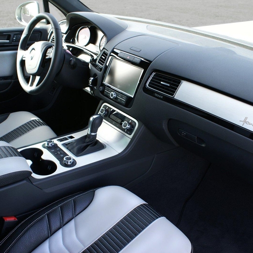 Под капотом, благодаря перепрограммированию блока управления мотором, мощность 3-литрового турбодизеля выросла с 240 л.с. до 275 л.с., а максимальный крутящий момент теперь составляет 580 Нм, вместо стандартных 500 Нм. От 0 до 100 км/ч немаленький Touareg разгоняется за 6,9 секунды, а максимальная скорость авто составляет 229 км/ч.