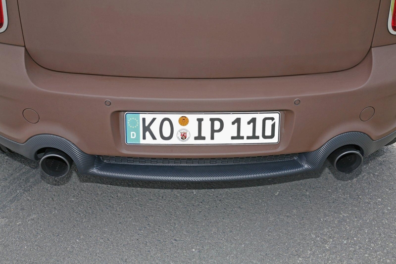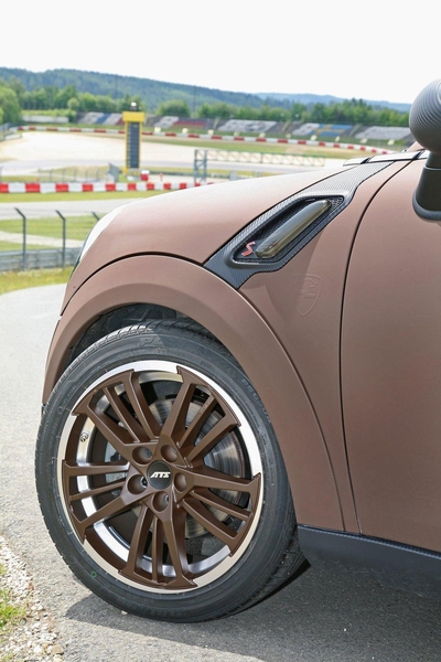 Под капотом тюнингового Mini Countryman расположился турбомотор объемом 1,6 литра. Мощность силового агрегата, благодаря перепрограммированию блока управления мотором и установке новой выхлопной системы с матовыми керамическими насадками, удалось увеличить с 184 л.с. до 235 л.с.