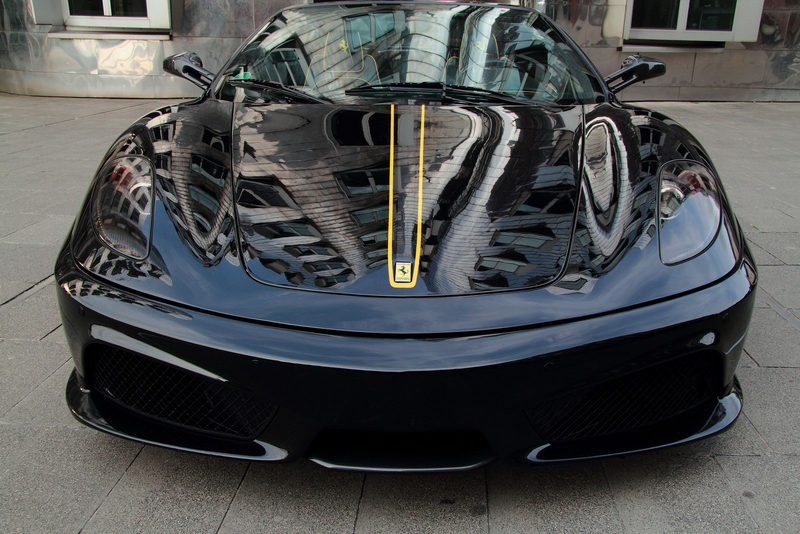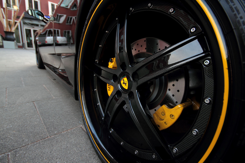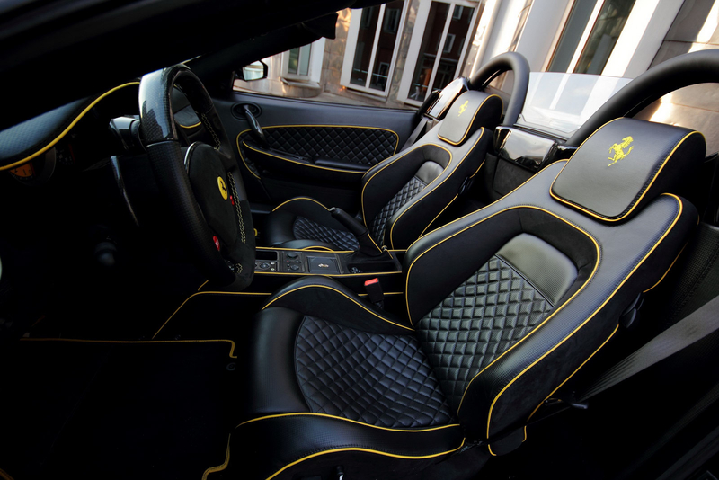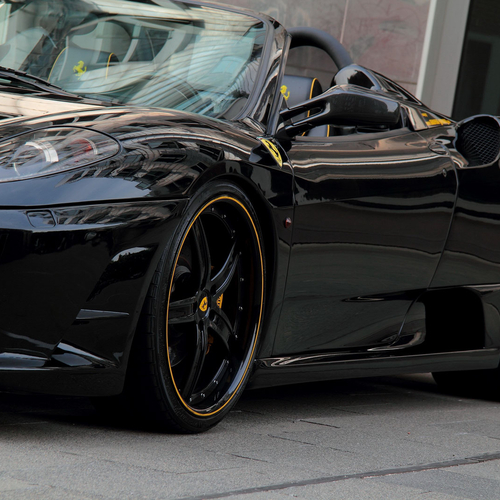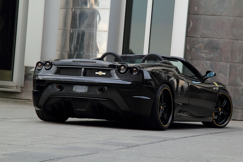 Внешне новинку легко можно узнать по фирменному черному цвету Hyper Black. Для контраста на кузов нанесли полоски желтого цвета. Кроме того, тюнеры затемнили фары головного света и поставили на суперкар Ferrari F430 Spyder 20-дюймовые колесные диски черного цвета, сквозь которые видны желтые суппорты тормозных механизмов.