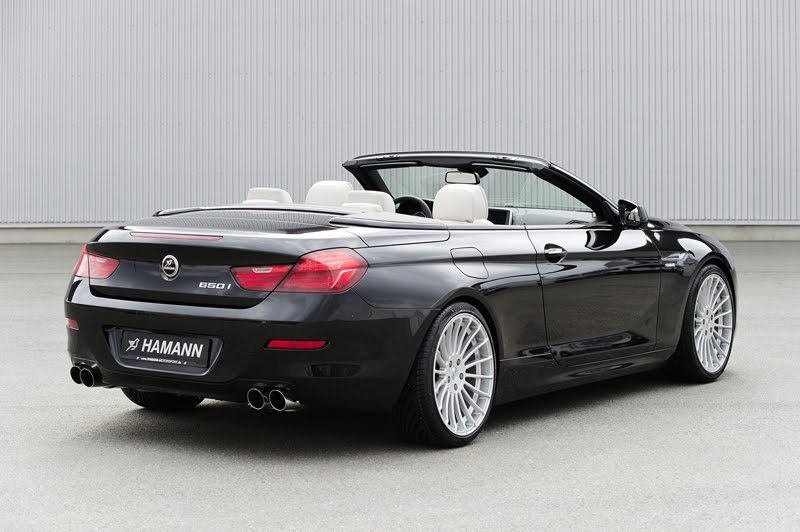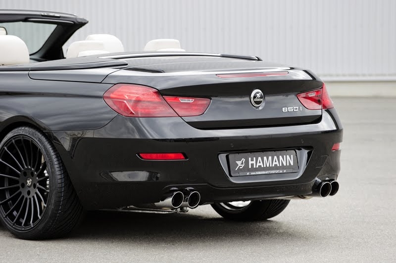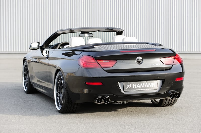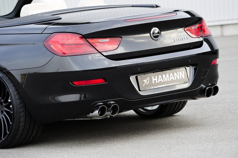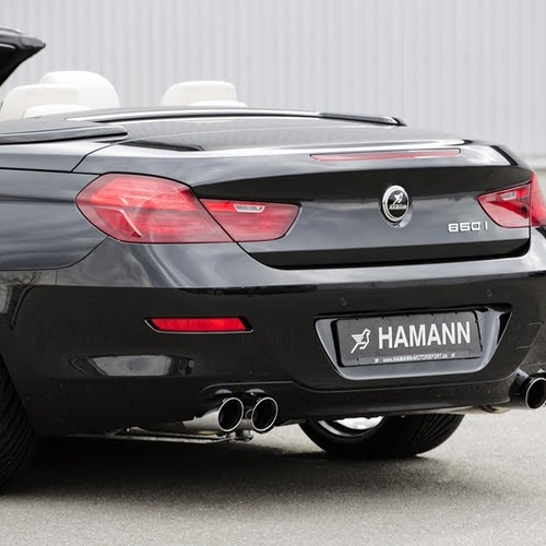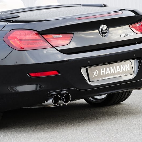 Вместо стандартной выхлопной системы в Hamann установили на BMW 6-й серии сдвоенные 90-милиметровые круглые патрубки. В салоне появились алюминиевые педали, а также эксклюзивные напольные коврики с логотипами Hamann.