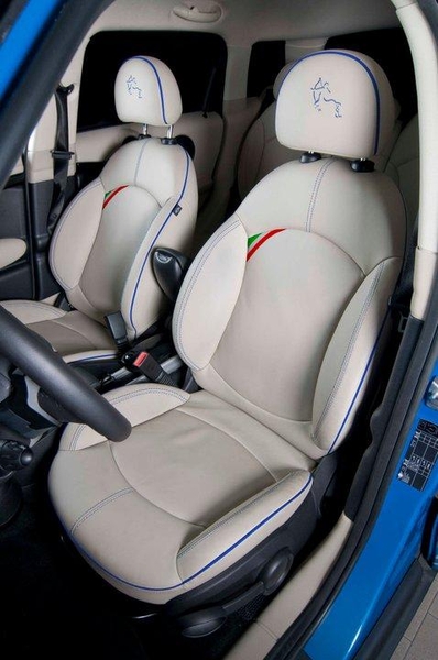 Внешне первый четырехдверный Mini получил синий окрас кузова с черными акцентами, а также серебристые полосы на капоте и крышу аналогичного цвета. Машину "обули" в 19-дюймовые колесные диски OZ Racing с шинами Yokohama. Сиденья в салоне отделали дорогой кожей, простроченной синими нитками.