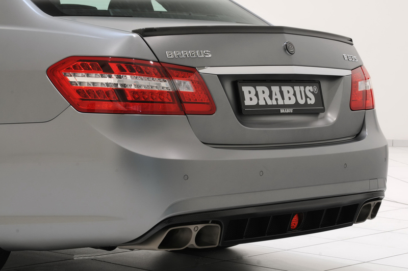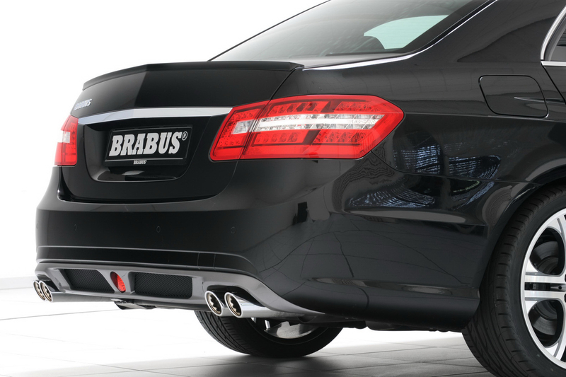 Для Е-класса в Brabus подготовили похожий аэродинамический пакет. На переднем бампере появился дополнительный спойлер, за передними крыльями обосновались дополнительные воздуховоды, а сзади прописался диффузор со сдвоенными патрубками выхлопной системы.