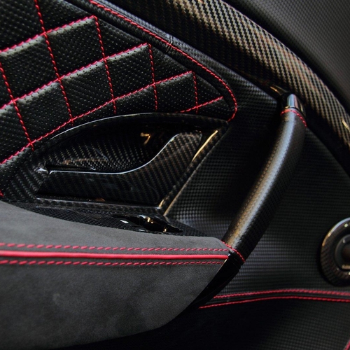 Аэродинамический пакет включает в себя капот, крышки зеркал, задний спойлер и спортивные юбки, которые сделаны из чрезвычайно прочного и легкого углеродного волокна. В салоне присутствует как черная кожа так и отделка из алькантары.