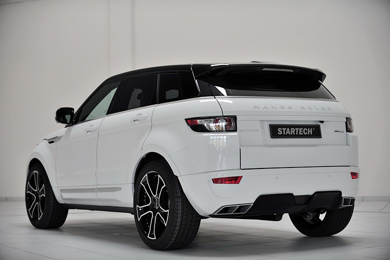 В тюнинг-варианте Startech внедорожник Range Rover Evoque получил передний и задний бамперы новой формы, видоизмененную радиаторную решетку, новый спойлер и дополнительные воздуховоды. Патрубки выхлопной системы интегрировали в задний диффузор.