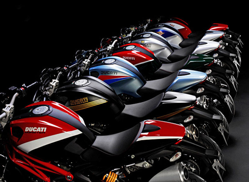 Ducati Monster 796 будет предлагаться в трех цветовых исполнениях - красном, белом и черном. В любом варианте окраса корпуса рама получит красный цвет, а диски будут предлагаться исключительно в черном исполнении. Другие цвета можно будет заказать за отдельную плату, в том числе желтый и розовый.
