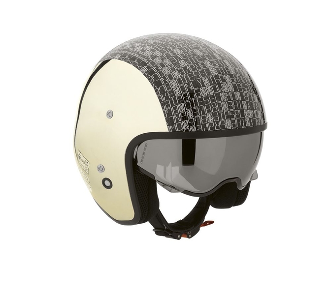 Темой для создания серии этих половинчатых шлемов была выбрана авиация. На многих моделях можно заметить соответствующую маркировку и надписи. Передний визор шлема выполнен из поликарбона с покрытием против царапин. Он может быть выполнен в одном из трех исполнений - прозрачный, дымчатый и серебристый.