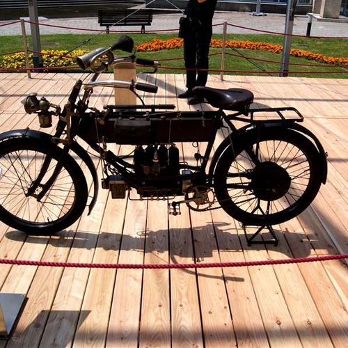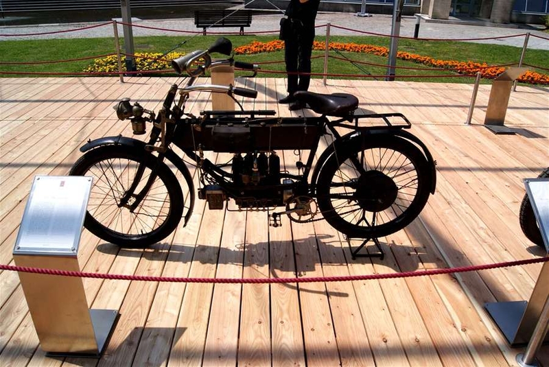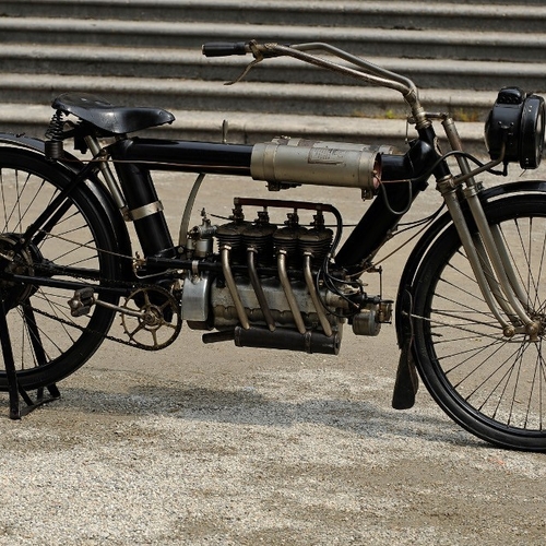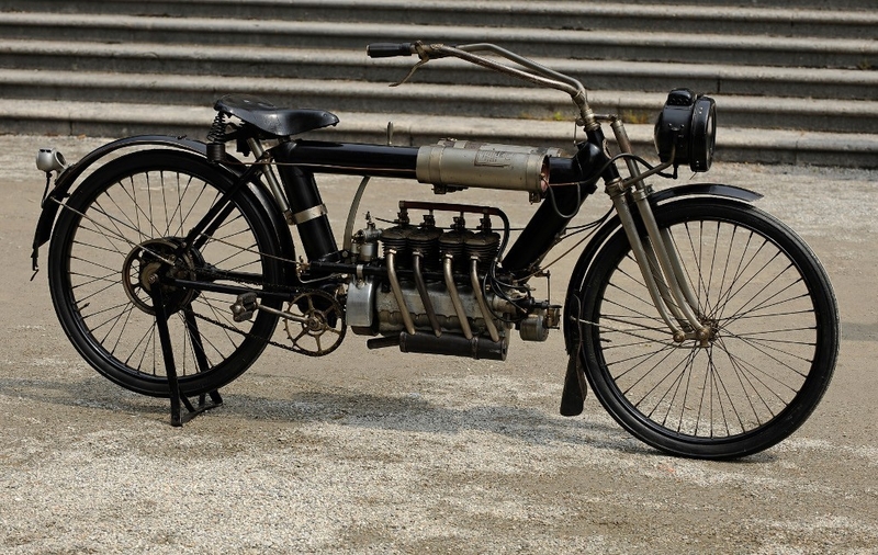 Речь идет об американском Pierce Four 1910 года. В основу этого эффектного байка легла продукция бельгийской компании F.N Belgium. Скромные 4 л.с. силы этого мотоцикла способны разогнать его до 97 км/час.