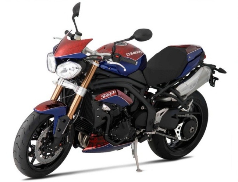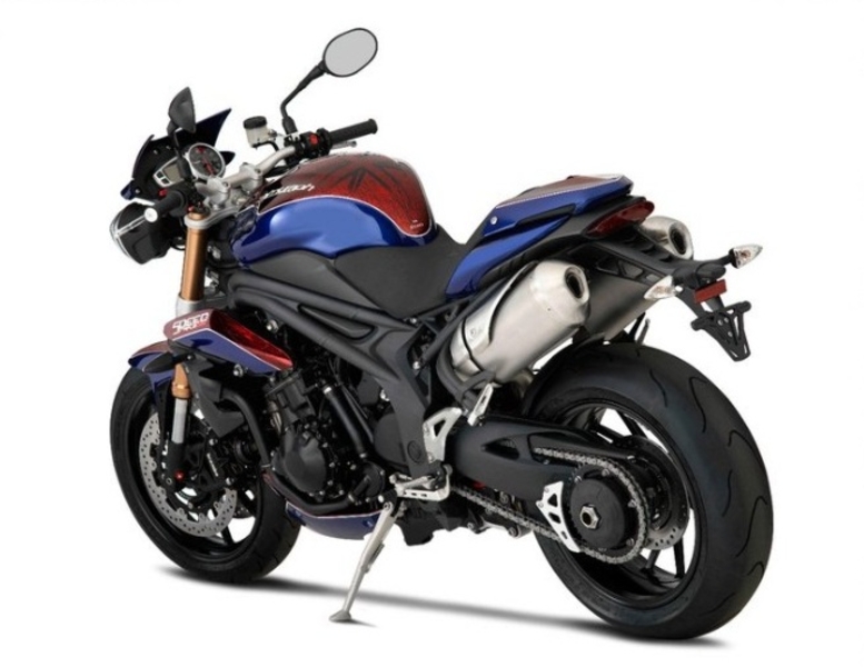 На мотоцикле заметны характерные цвета, позаимствованные у так называемого "Юнион Джека" - флага Великобритании. Многие элементы дизайна выполнены вручную. Первый Speed Triple, который сошел с конвейера в этом "наряде", отправился в автопробег по Британии в рамках промо-кампании.
