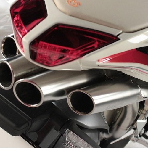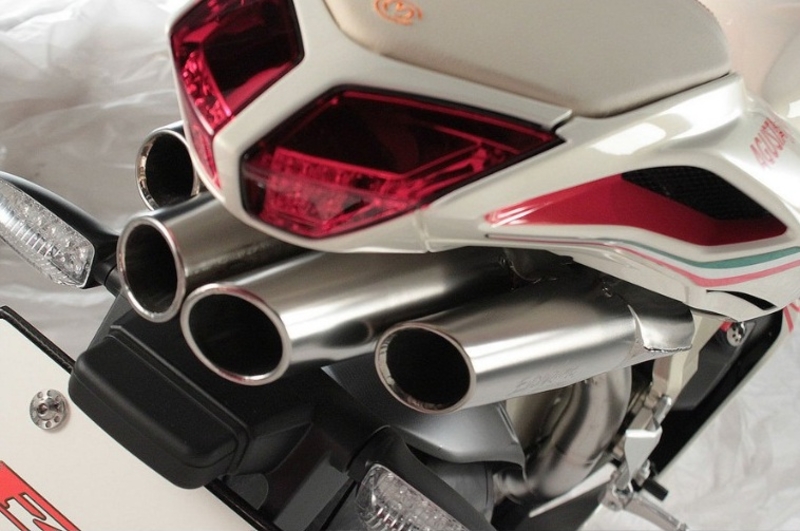 Владельцев F4 порадует титановый глушитель, который позволил значительно сэкономить вес. Инженеры смогли разработать выхлопную систему весом 6,8 кг, хотя базовый вариант весит 13,4 кг.