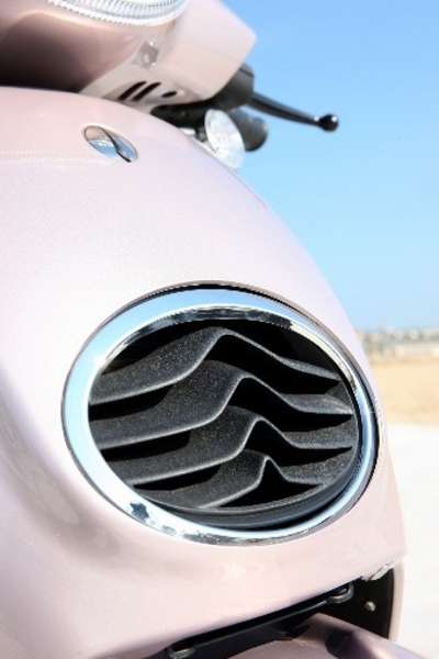 Решетка на передке мопеда напоминает ранние модели. Указатели поворота стали более узкими и плоскими, а руль более легким и удобным. Скутер получил двойное сидение и обновленную заднюю защиту.