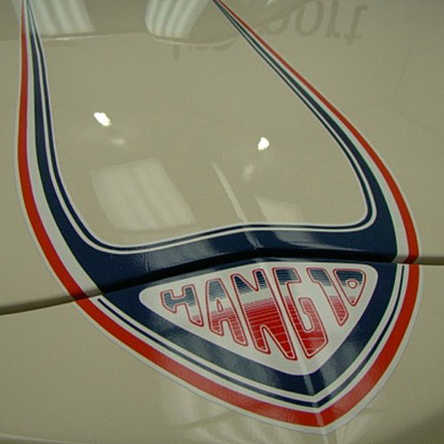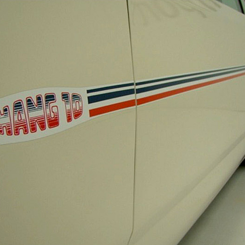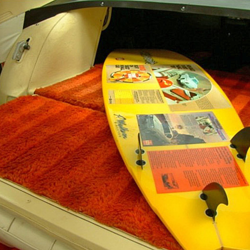 Чем примечателен данный экземпляр? Тем, что всего было выпущено лишь 500 таких автомобилей. На кузове Dodge Hart Hang Ten до сих пор сохранились рисунки на морскую тематику, а в багажнике автомобиля можно, как и прежде, свободно разместить доску для серфинга. Отделка салона выполнена в ярких тонах с множеством контрастных полос и оранжевыми ковриками на полу.