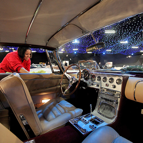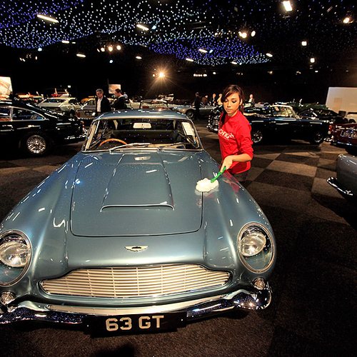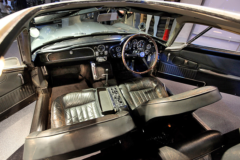 Легендарный Aston Martin DB5 может похвастаться тем, что за его рулем сидел Шон Коннери в фильмах "Годфингер" и "Шаровая молния". Автомобиль снабжен катапультируемым креслом, пулеметами, "изменяемыми" номерами и другими "шпионскими штучками".