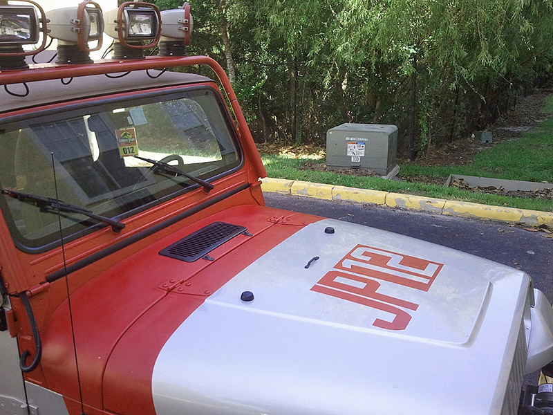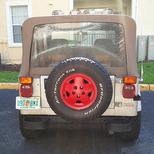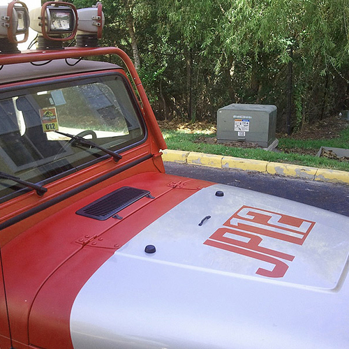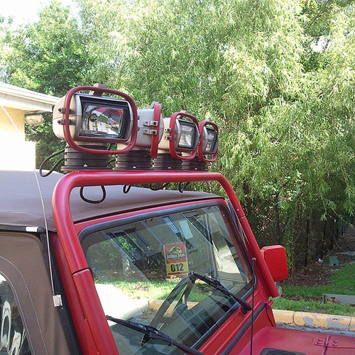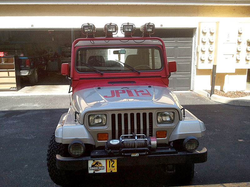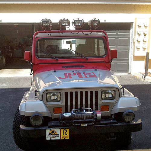 На кузов этого внедорожники нанесены рисунки, аналогичные тем, что были использованы в фильме "Парк Юрского периода". Причем, обратите внимание, - рисунки, а не наклейки. Из дополнительных гаджетов на автомобиле есть лебедка, а также большие фонари на крыше.
