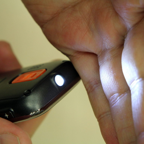 На тыльной стороне корпуса расположилась ярко-оранжевая клавиша экстренного вызова. При ее нажатии Fly Ezzy отправляет SMS на заранее внесенный номер.